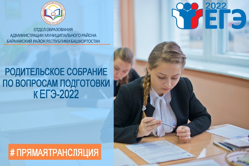 20 января 2022 года в 18:00 часов отделом образования Администрации МР Баймакский район РБ проводится родительское собрание по вопросам подготовки к Государственной итоговой аттестации по образовательным программам среднего общего образования выпускников общеобразовательных организаций (ЕГЭ) в онлайн режиме.