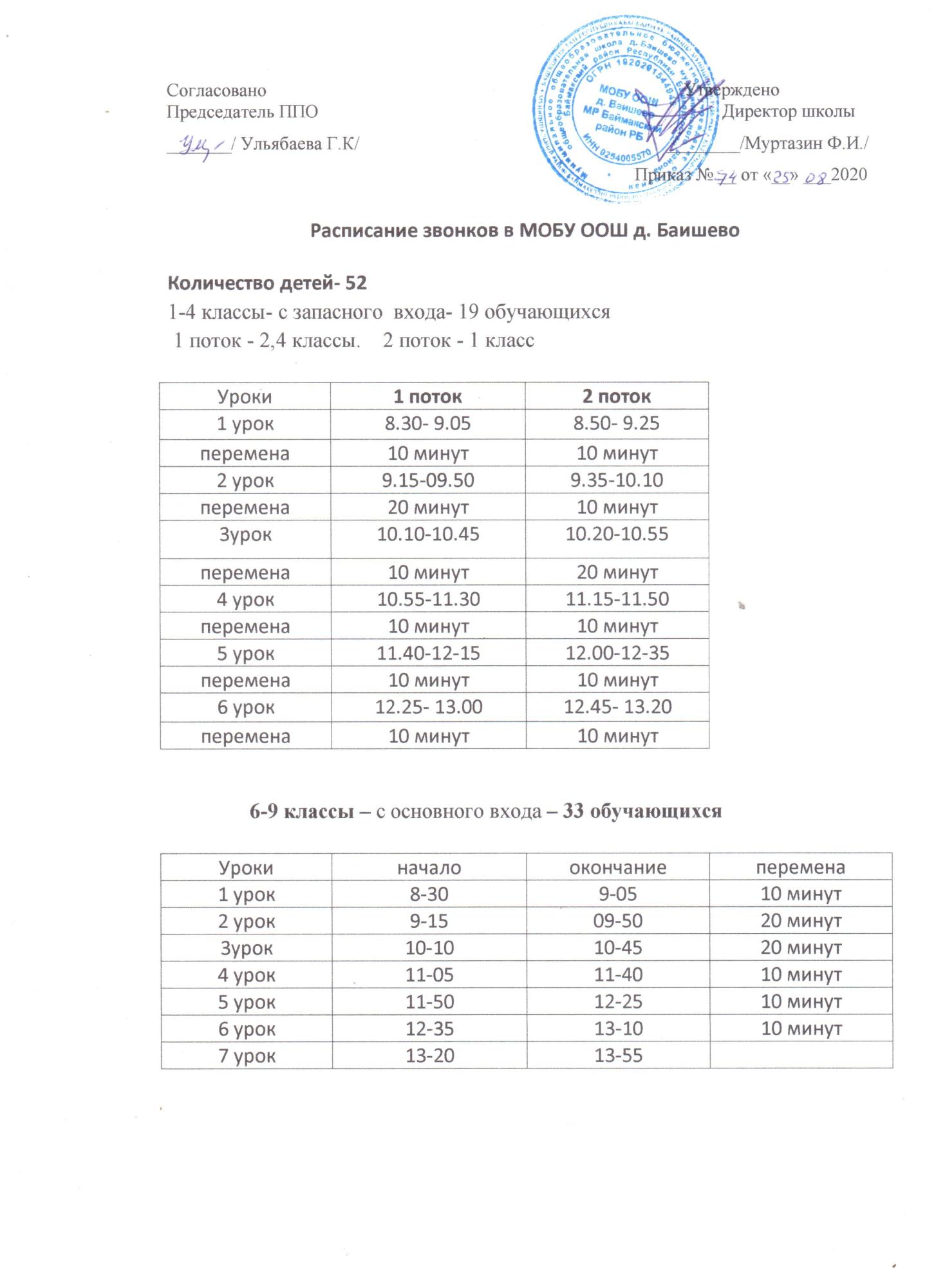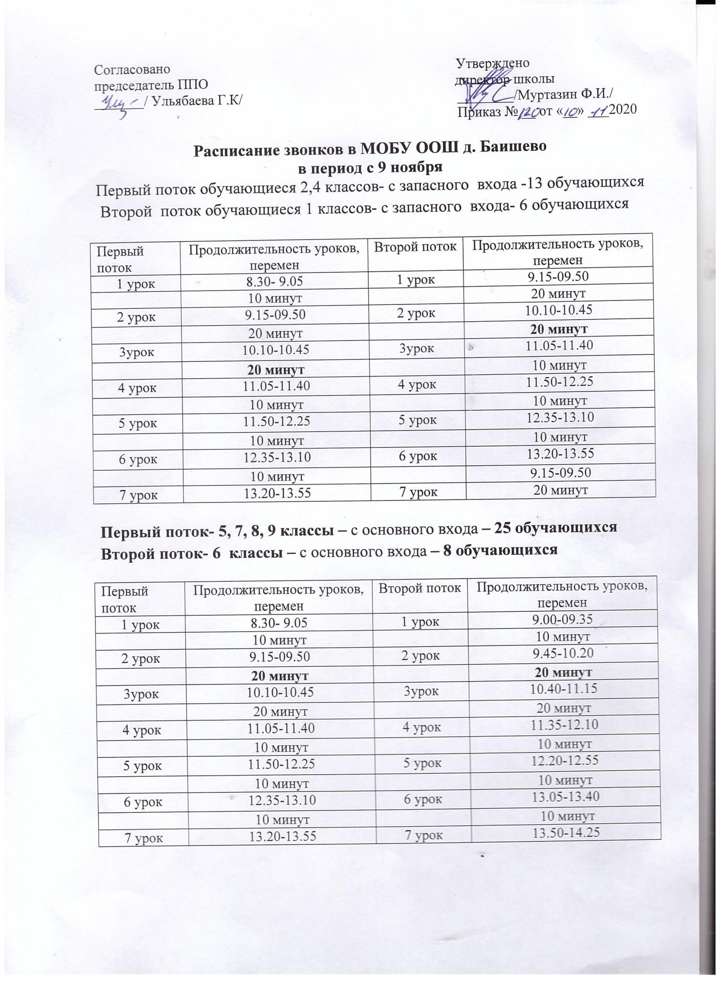 Расписание звонков на 2020-2021 год