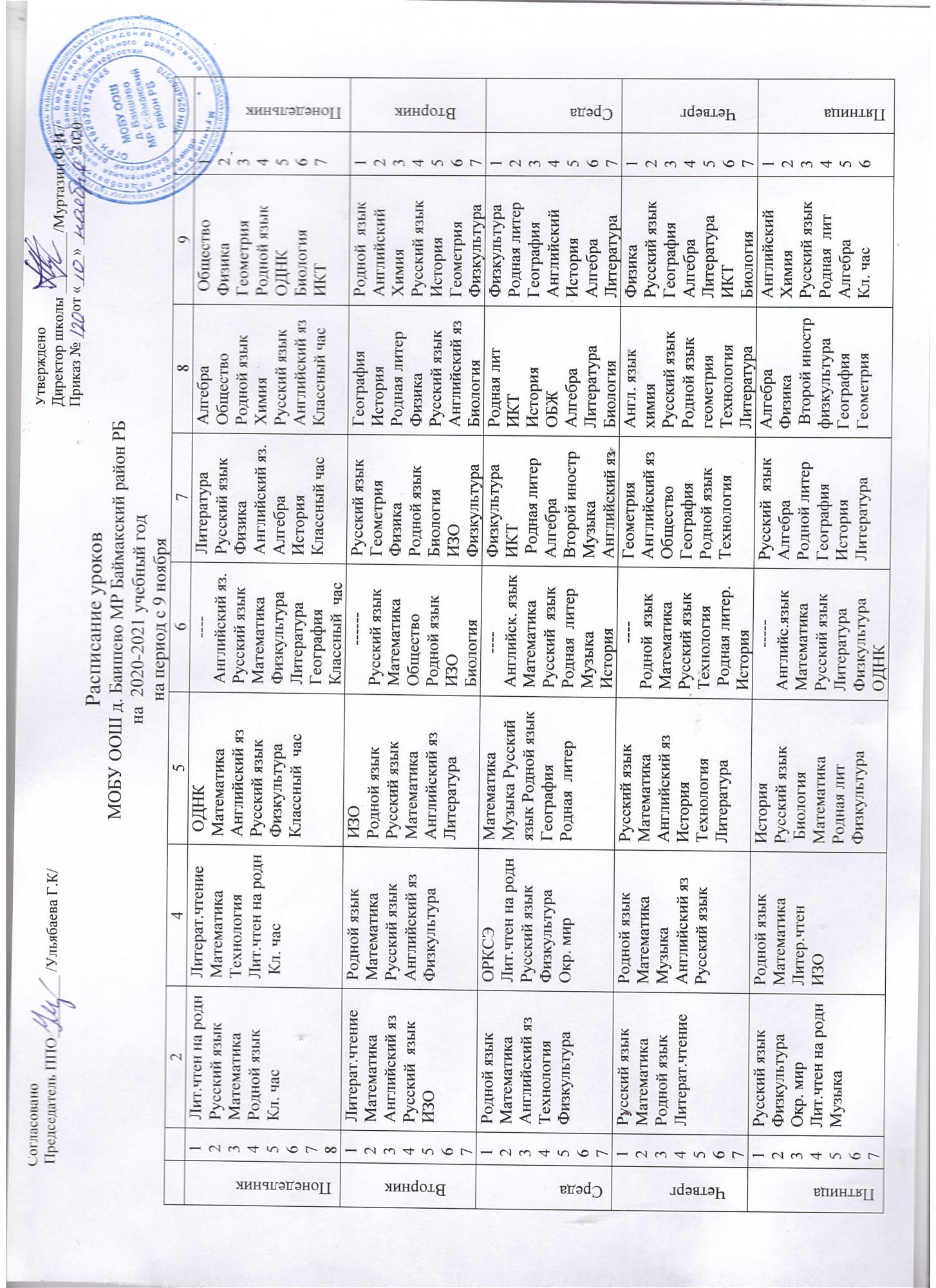 Расписание уроков 2020-2021 год