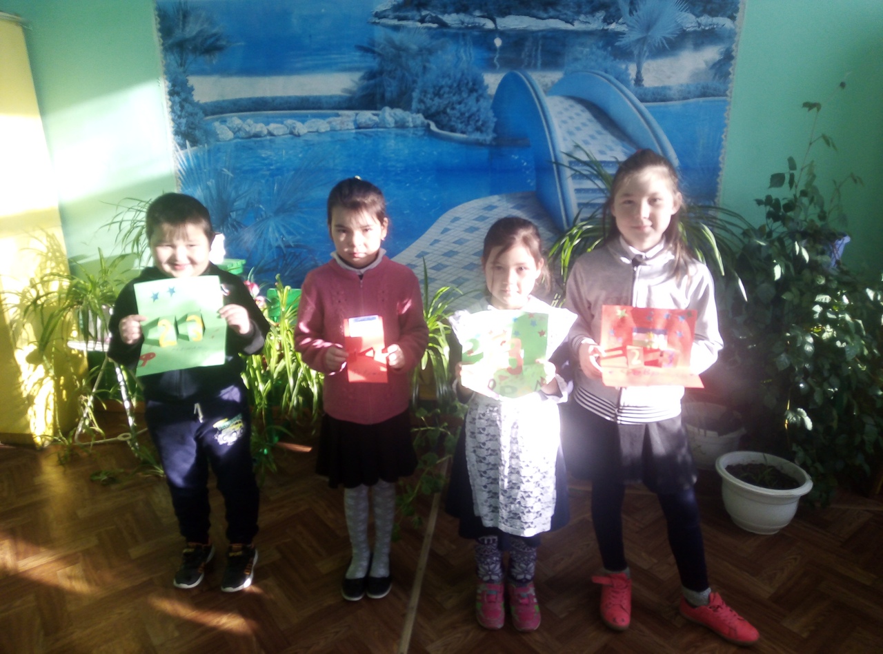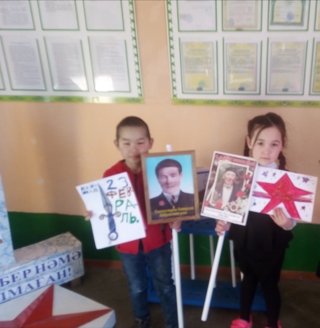 Праздничные стенгазета, рисунки, подарки. Встреча с ветераном боевых действий Давлетшиным Айбулатом Ташбулатовичем.