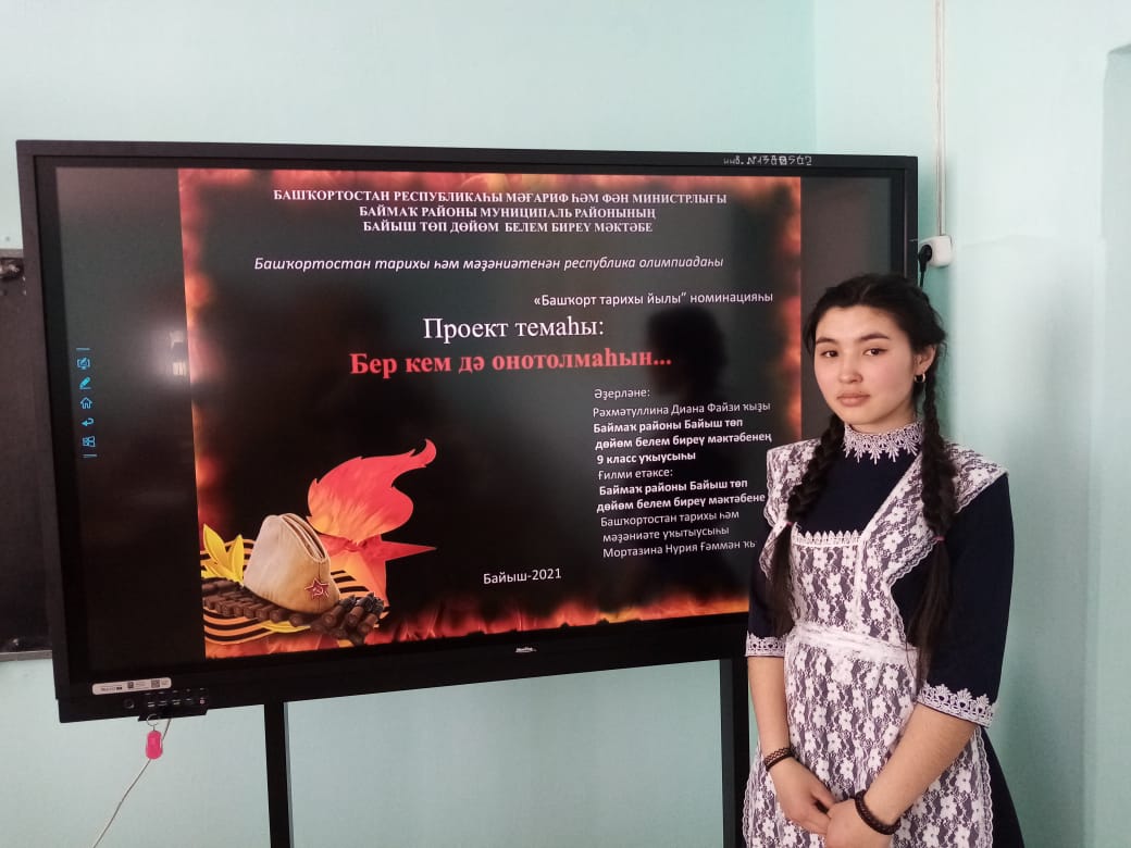Призер республиканской олимпиады по ИКБ в номинации "Год башкирской истории". Защита проекта Никто не забыт"